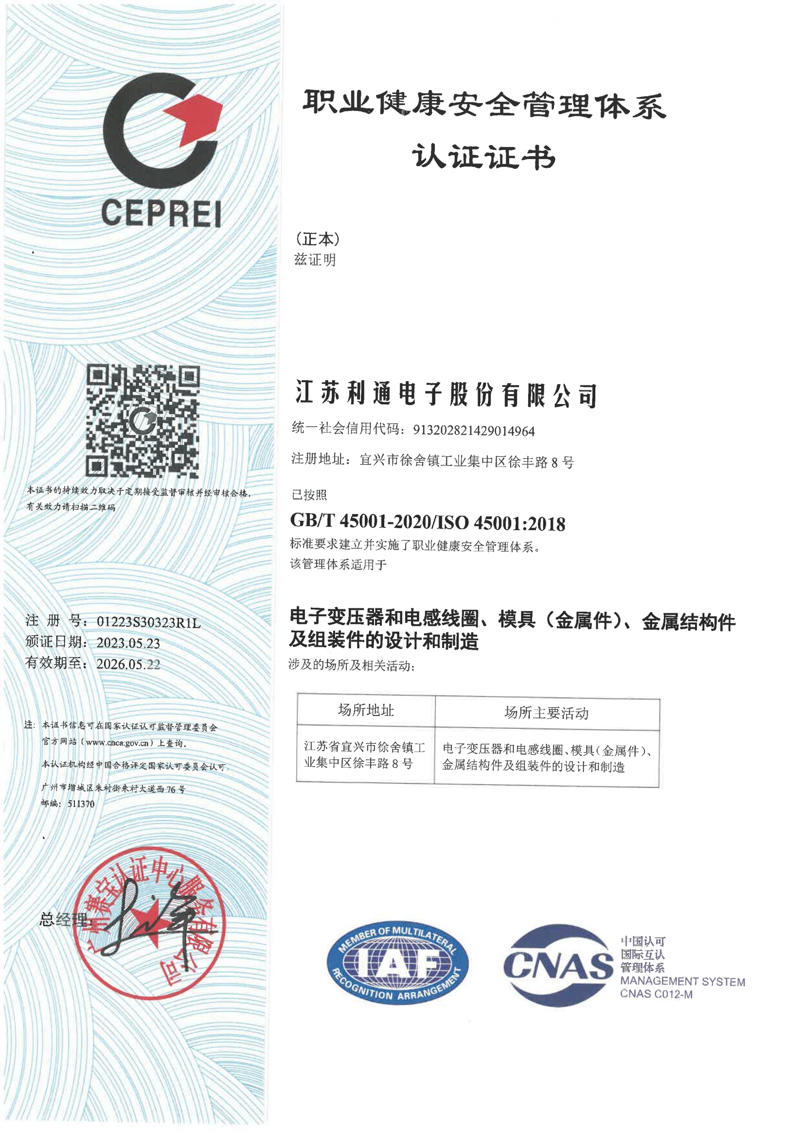 ISO 45001 職業(yè)健康安全管理體系認(rèn)證證書(shū)