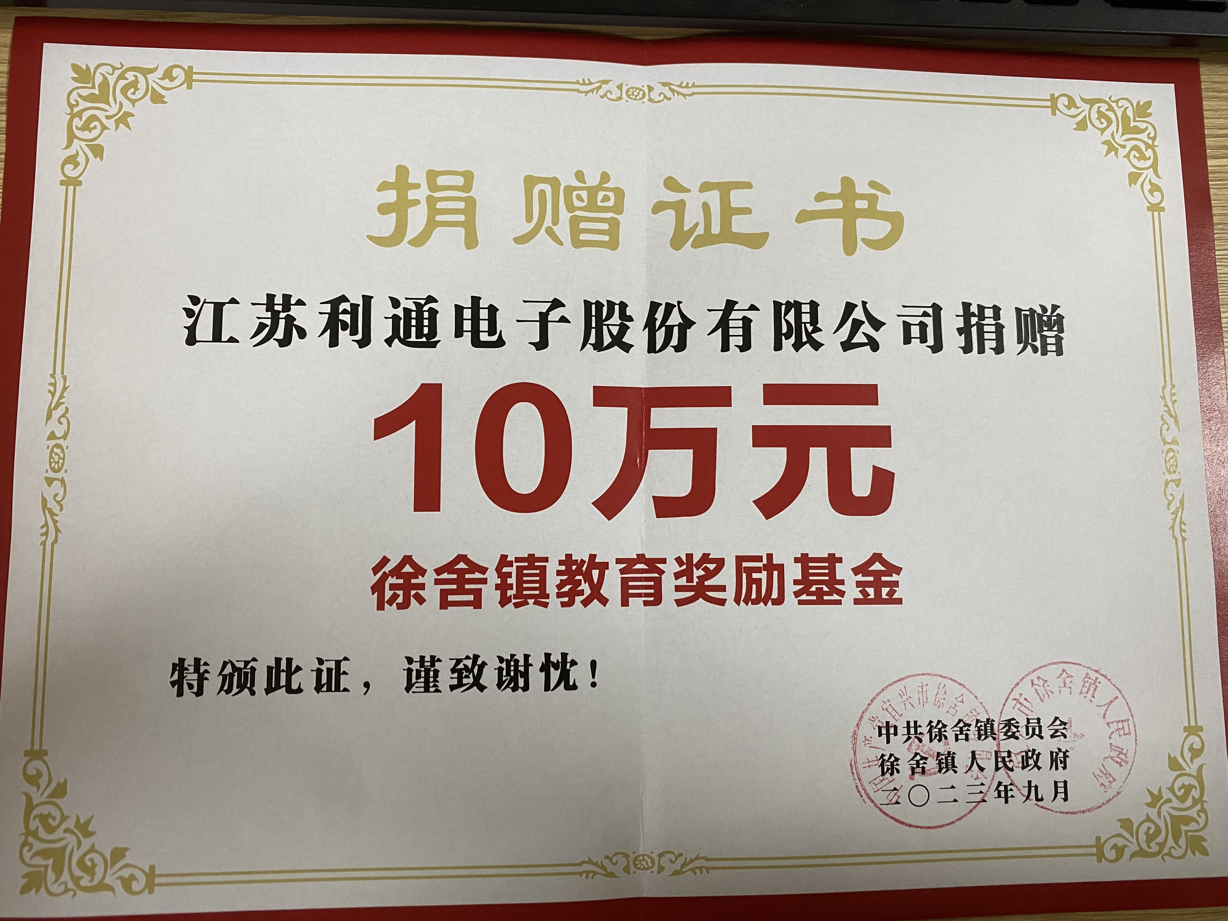 多年來(lái),利通電子堅(jiān)持慈善捐贈(zèng),助力徐舍鎮(zhèn)教育事業(yè)發(fā)展,同時(shí)全力幫助外地員工解決落戶和子女入學(xué)問(wèn)題,彰顯了我司作為本土企業(yè)的鄉(xiāng)土情懷和上市公司的責(zé)任擔(dān)當(dāng)。